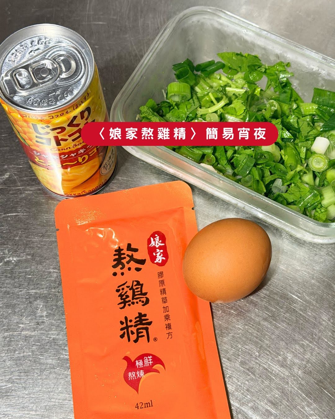 我偶爾也會用滴雞精、熬雞精做一些簡單的宵夜給孩子吃,無論是微波爐蒸蛋或是玉米蛋花湯,幾分鐘就可以完成馬克杯料理。
