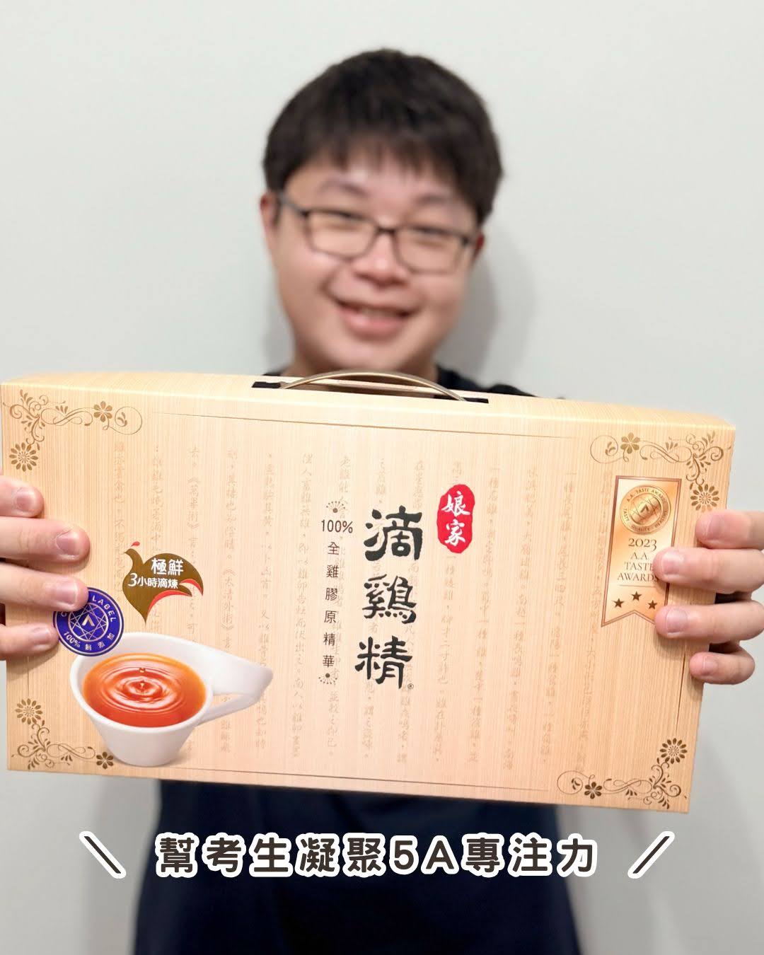 不過,大葛格國中三年都自己念書、沒有補習,這次模擬考成績相當不錯,外婆阿嬤立刻送上滿滿的獎勵與心意──娘家常溫滴雞精,希望替準備會考的大外孫補補精神、凝聚 5A 能量。娘家禮盒包裝相當有質感,外層還有塑膠密封包裝細心保護,提把設計方便直接拎著送人;整體兼具環保理念與高貴大氣的視覺感受,是送禮自用都很加分的好選擇。