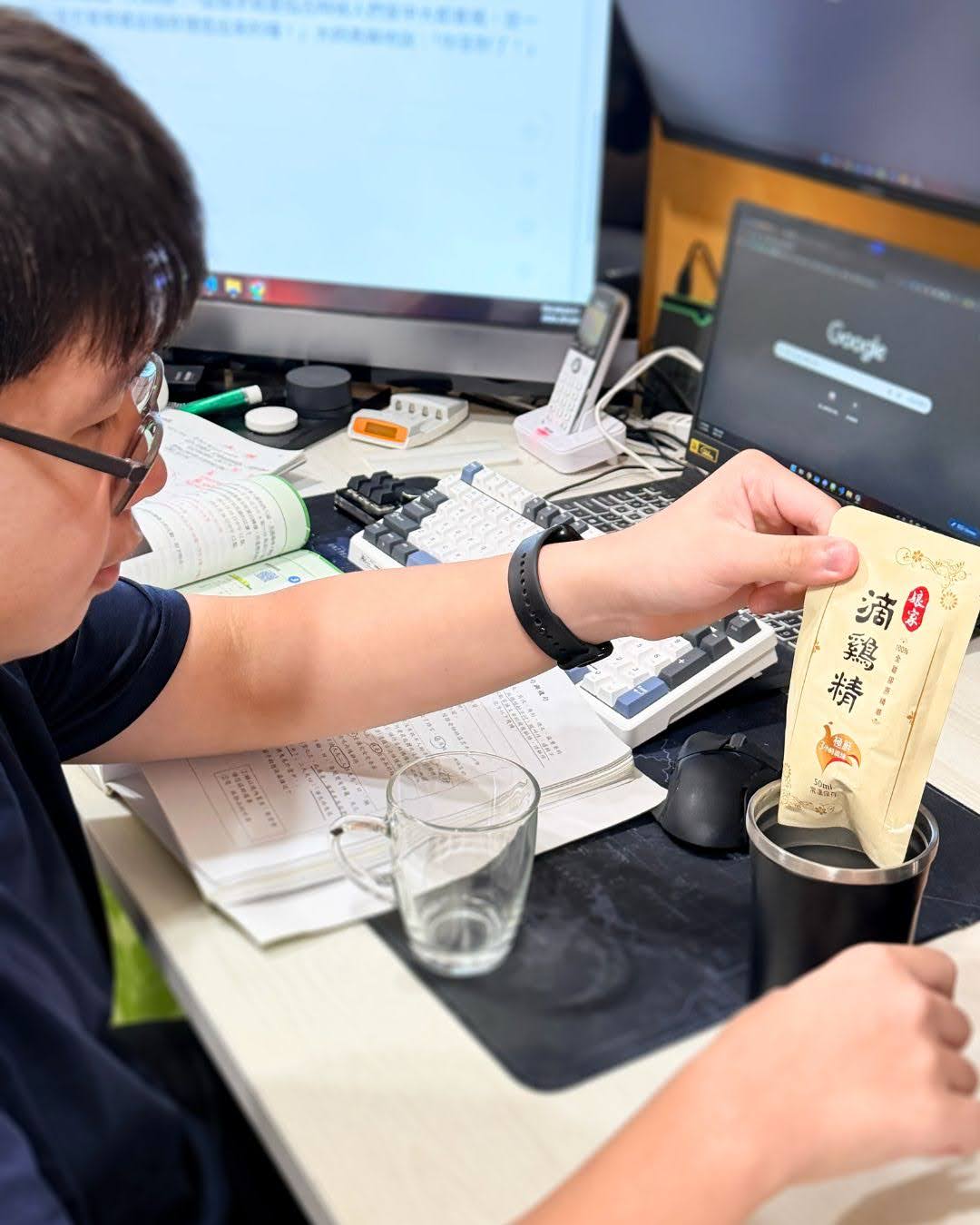 很多人會問的熬雞精滴雞精差別到底在哪?以娘家來說,滴雞精選用的是黑羽土雞,極鮮三小時內入鍋滴製,再經過高溫高壓長時間萃取,全程不添加任何一滴水,喝起來特別濃郁、純粹,很適合考前衝刺、精神需要快速補給的時候。